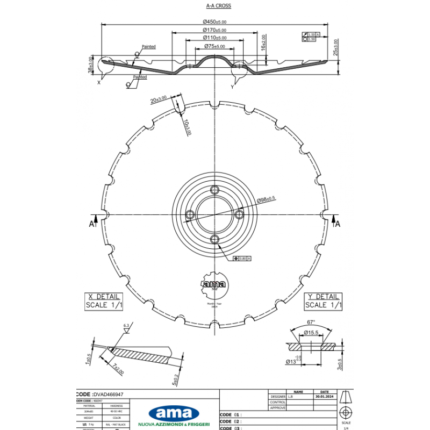 Talerz do agregatu talerzowego, zębaty 610 mm, 6 otworowy, grubość 5 mm